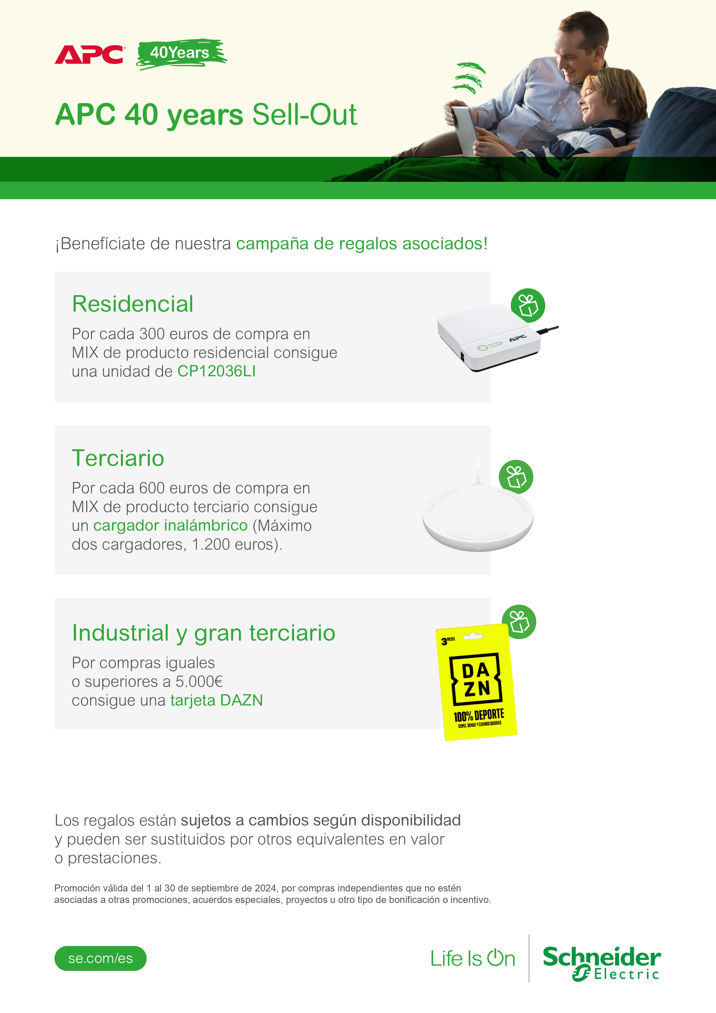 Invirtiendo 600 euros en productos de la gama terciario, obtén un cargador inalámbrico. Máximo de dos cargadores, 1.200 euros en compras.